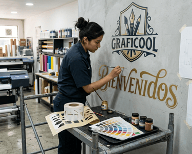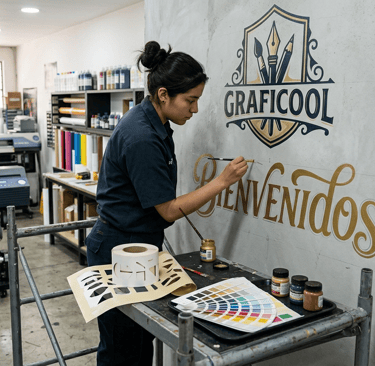 Desde murales corporativos hasta detalles personalizados que transforman cualquier espacio en un ambiente auténtico y profesional.
