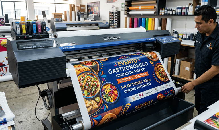Imprimimos lonas resistentes para espectaculares y anuncios, asegurando colores vibrantes y montaje impecable que resiste el clima.